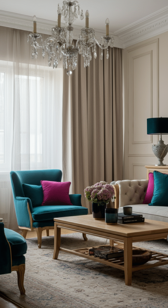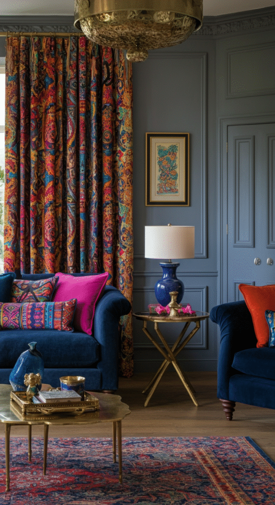 If you’re looking for a way to add vibrancy to your living room, bold color curtains are a perfect choice. Shades like deep teal, burnt orange, or mustard yellow can be the focal point of the room, adding a burst of color without overwhelming the space.