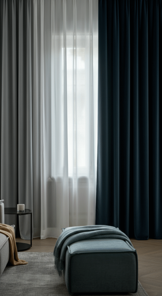 Layering curtains creates depth and versatility, allowing you to mix and match different styles. You can pair sheer curtains with thicker blackout curtains for added flexibility or combine two different textures or colors to create a more dynamic and personalized look. Layered curtains are great for living rooms that need a bit of extra dimension.