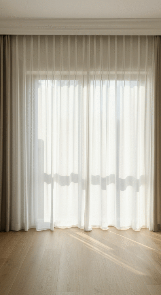 Sheer curtains are a great option for creating a light, airy feel in your living room. They allow natural light to flood the room while maintaining privacy. Sheer curtains work best in rooms where you want to maintain a soft, breezy look without sacrificing brightness.