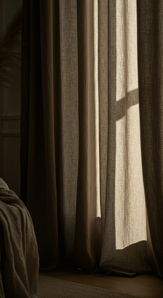 If you’re looking for eco-friendly living room curtains, natural fibers like cotton, jute, or bamboo are perfect options.