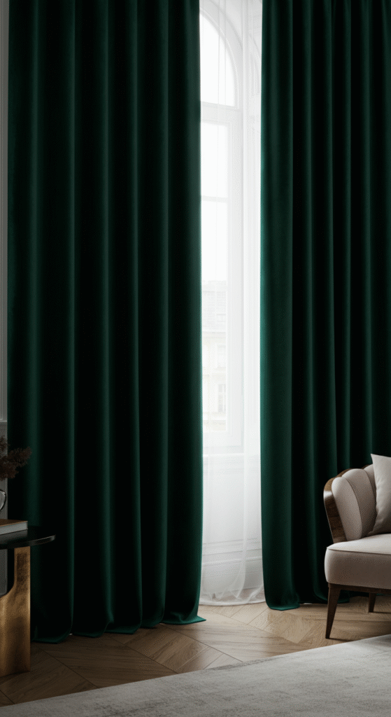 Floor-length curtains are a timeless option that never goes out of style. They create an elegant, almost regal feel to a living room, particularly when made of luxurious fabrics like velvet or silk. Floor-length curtains work well in larger spaces, giving the room a sense of height and grandeur.