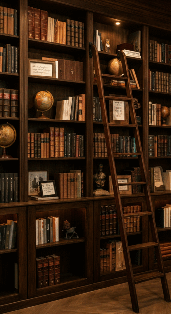 Imagine shelves filled with leather-bound volumes, vintage novels, and classic literature. A full-wall bookshelf adds a layer of grandeur and intellectual depth to any room.