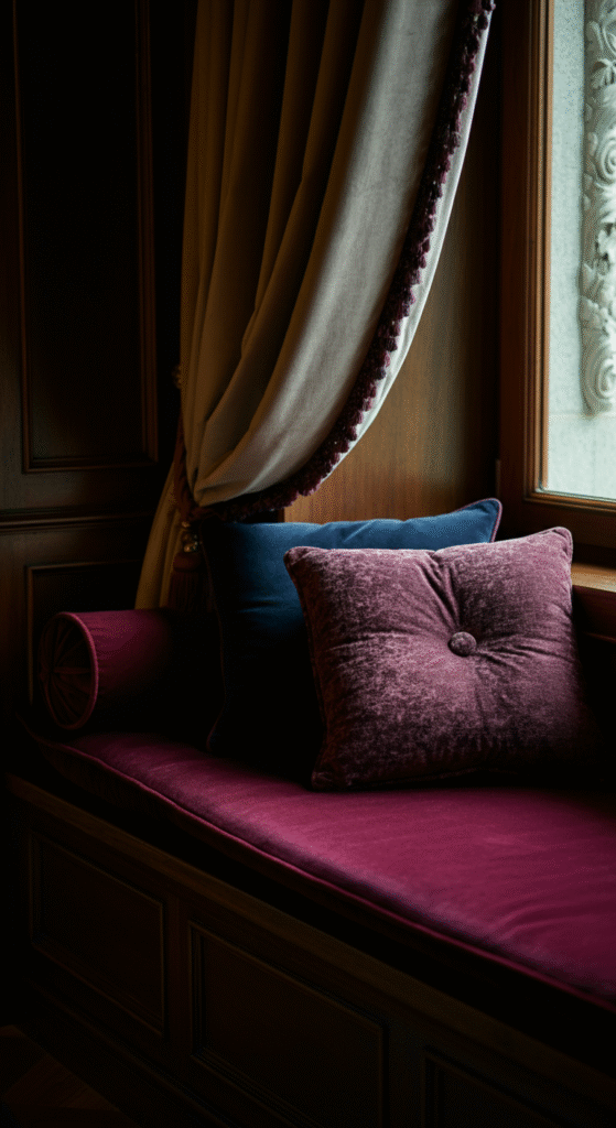 Opt for deep hues like forest green, royal blue, or burgundy, which will pair beautifully with wooden bookshelves and ambient lighting. These colors not only look rich but also invite relaxation.