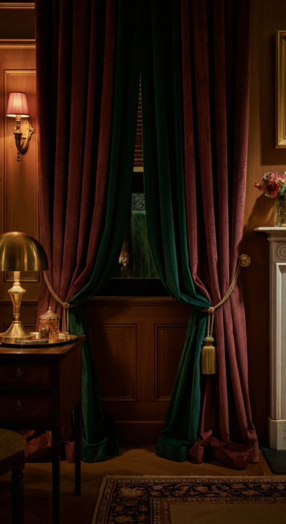 Choose a rug with rich reds, blues, or greens to complement the rest of the room’s design. The rug will tie the space together, creating a cozy, inviting atmosphere.