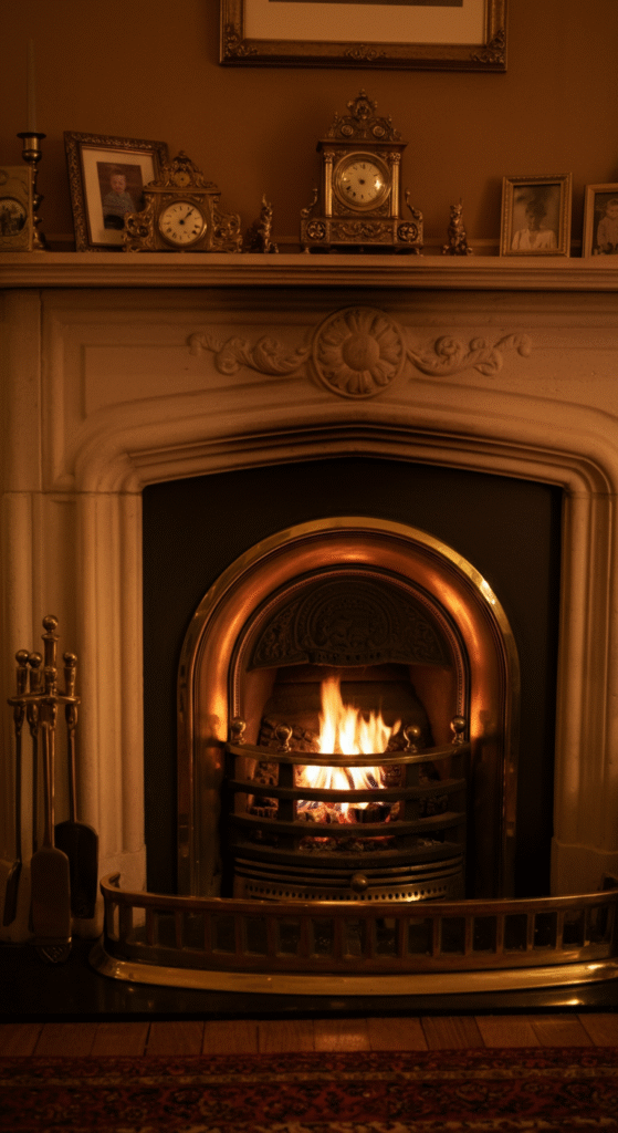 Incorporate a mantelpiece adorned with antiques, vintage clocks, and framed portraits to add personality. A marble or stone surround will further enhance the classic feel, making it a stunning centerpiece in your room.