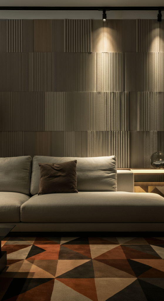 If your living room feels too flat or one-dimensional, try adding textured wall panels. This could be wood, fabric, or even stone panels that create depth and interest. A feature wall like this can instantly transform your living room into a modern, stylish space.