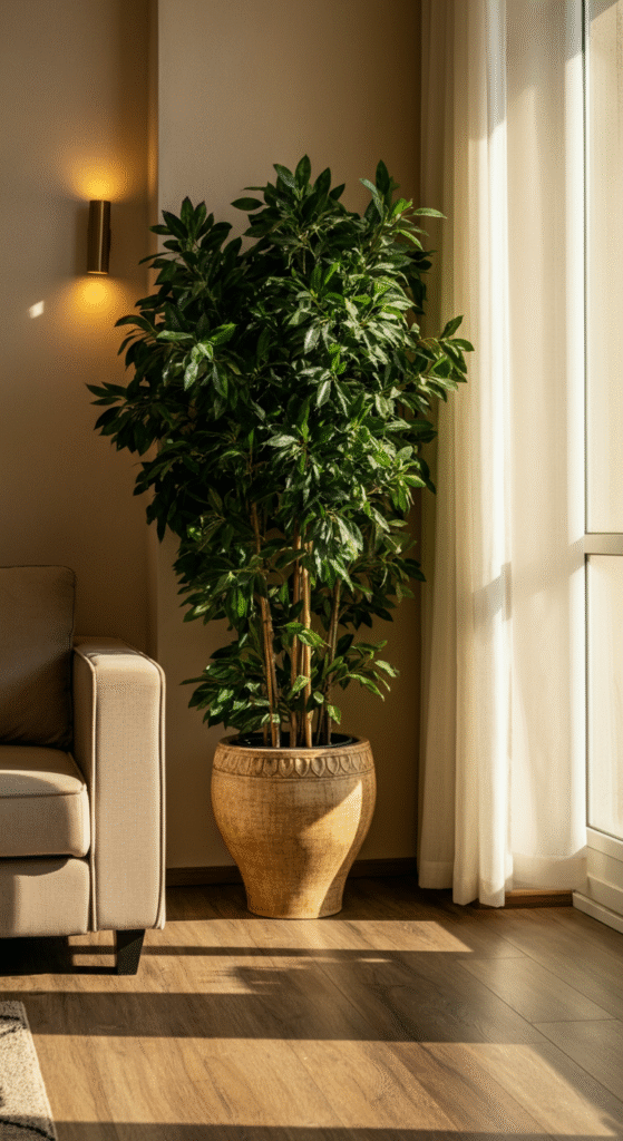 Large decorative vases, especially those with unique shapes or vibrant colors, are excellent for filling up empty spaces in your living room. These can be placed on the floor, on a shelf, or even as centerpieces on a table.