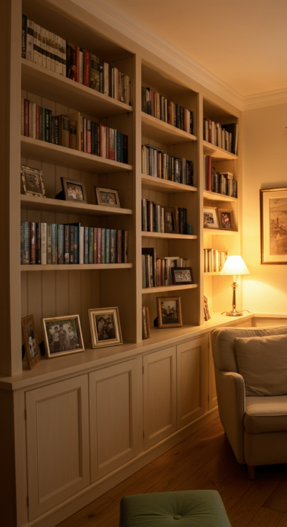 If you have a wall that’s begging for attention, consider installing custom shelving. A bookcase not only fills the space but also gives you a place to showcase books, decorative items, and personal mementos. You can even use floating shelves to create a modern, minimalistic look.