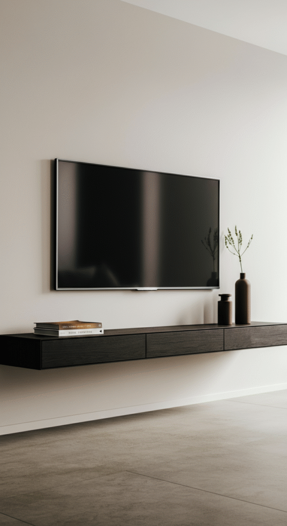 A floating TV console not only gives your TV a stylish home, but it also frees up floor space. Choose a sleek, minimalistic design that matches the aesthetic of your living room. This modern approach can help reduce clutter and keep the space feeling light.