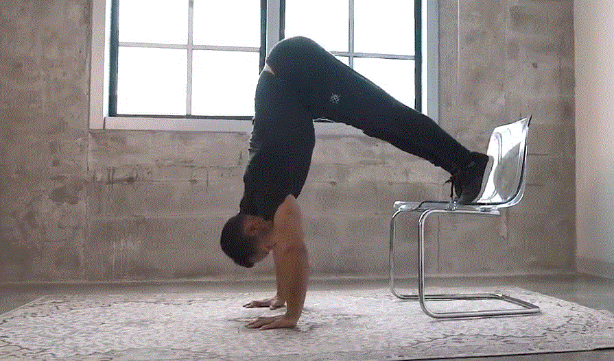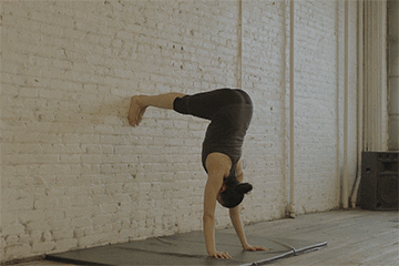- How to: Kick into a wall-supported handstand. Lower your head toward the floor by bending your elbows, then push back up.
