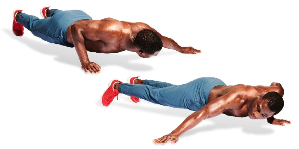 - How to: Get into a push-up position, lean your shoulders forward past your wrists, and lower yourself while keeping your elbows close.