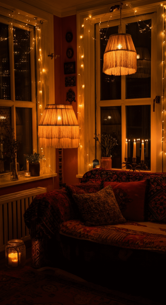 Lighting can make or break a room, and in Boho design, it’s all about creating a warm, intimate atmosphere. Forget harsh overhead lights. Instead, opt for soft, ambient lighting to set the mood.