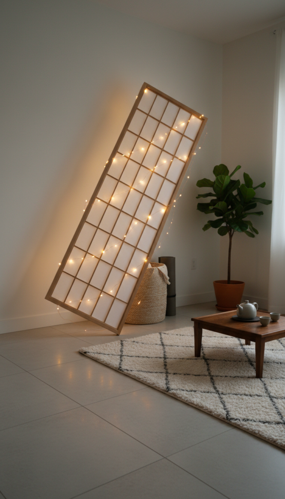 Create distinct zones in your bedroom with a Shoji screen. These translucent paper and wood screens provide privacy while letting light filter through. To keep it boho, drape a vintage throw blanket over one corner or weave some fairy lights through the lattice. It creates a dreamy, intimate vibe perfect for a bedroom.