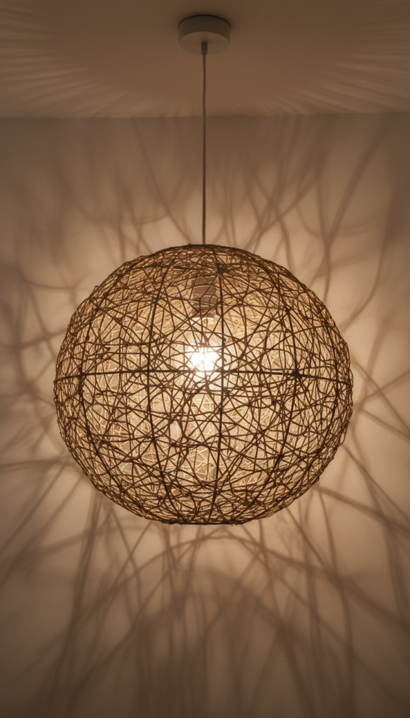 Natural materials are a cornerstone of bohemian decor. Replacing a standard ceiling fixture with a woven rattan or bamboo pendant light makes a massive statement. These fixtures add an organic, earthy element to the ceiling. When lit, the woven texture casts intricate, dancing shadows across the walls, adding depth and visual interest to the space even at night.