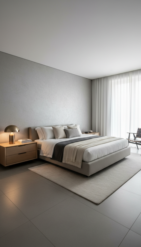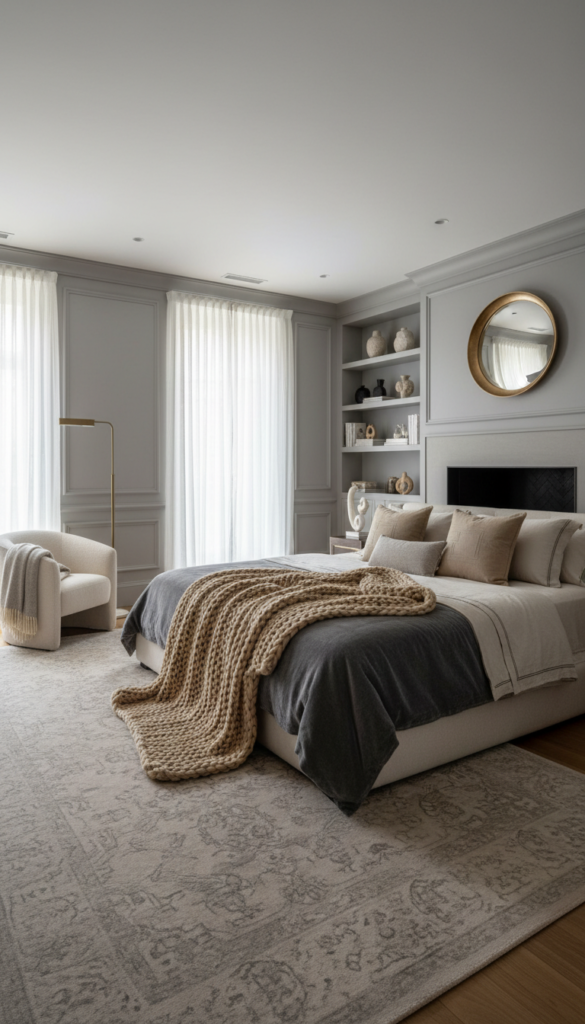 Texture is the final touch that brings a room to life. A throw blanket draped casually at the end of the bed adds dimension and softness, preventing the room from feeling too sterile or “showroom-like.”
