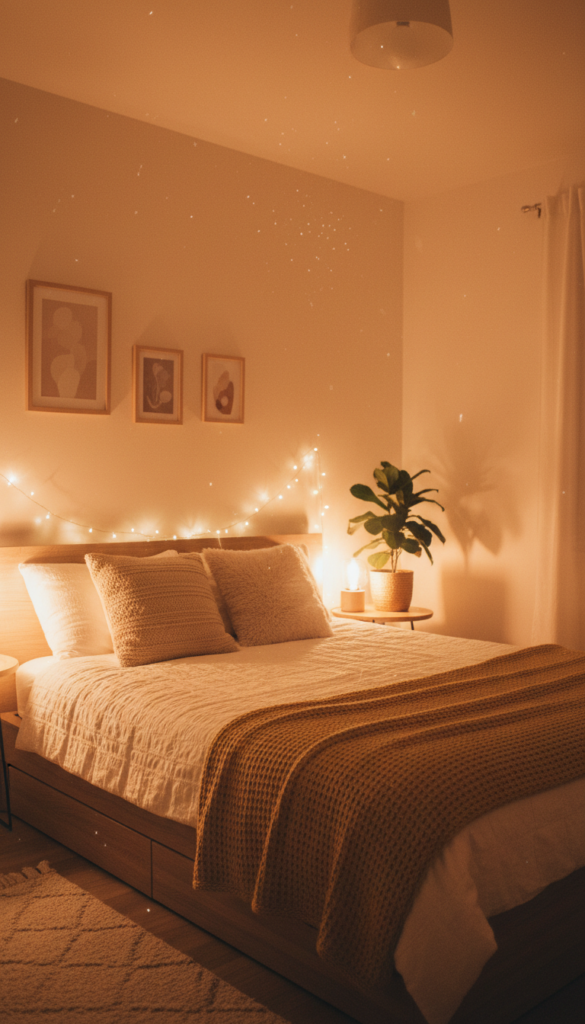 Lighting is the single most important element in photography, but you don’t always need blinding studio strobes. For a bedroom shoot, you want ambiance. String lights, fairy lights, or soft lamps create a warm, inviting glow that smooths out skin tones and adds a whimsical touch to the background.
