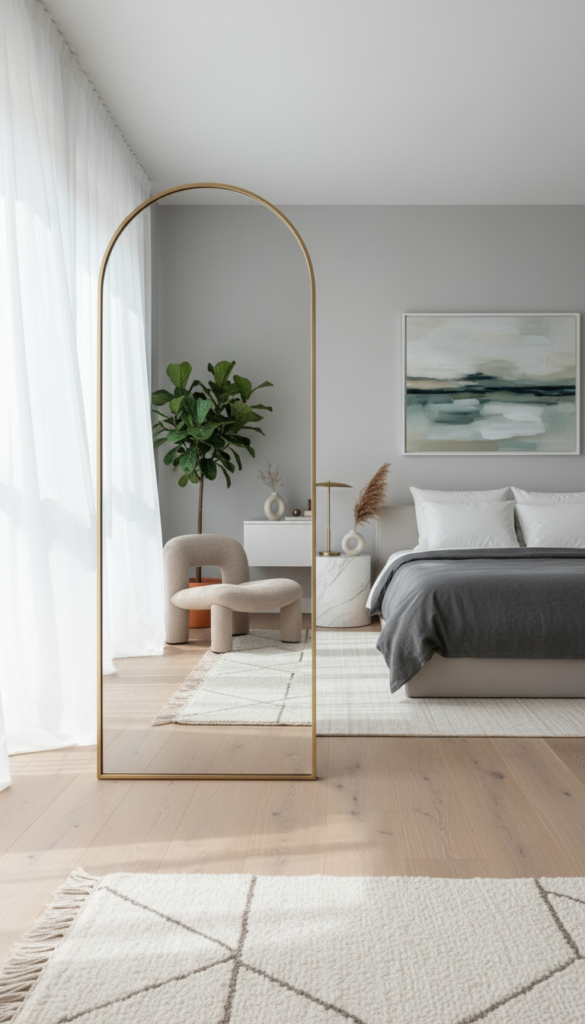 - Lean a full-length wavy or arched mirror against a wall for a trendy, relaxed vibe.