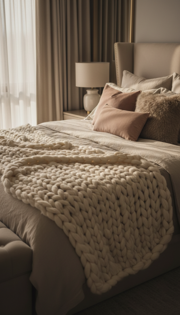 - Drape a chunky knit blanket casually over the corner of your bed or a chair.