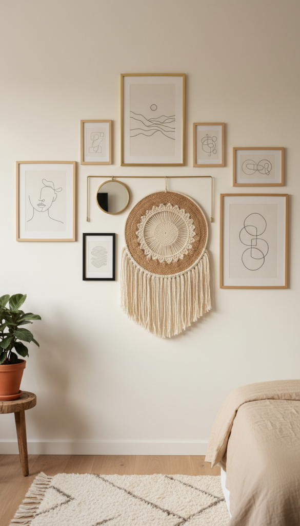 Blank walls are missed opportunities. A curated gallery wall tells a story about your personality and provides an interesting background that isn’t too distracting. Whether you prefer minimalist line art, vintage posters, or personal photos, a gallery wall adds instant character.