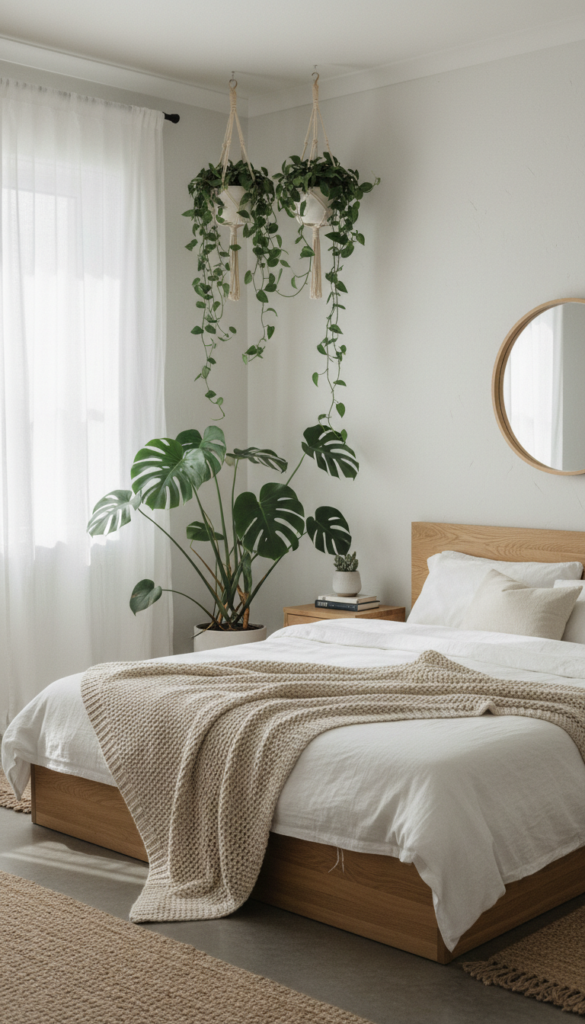 - Place a tall potted plant (like a monstera or fiddle leaf fig) in the corner to frame the shot.