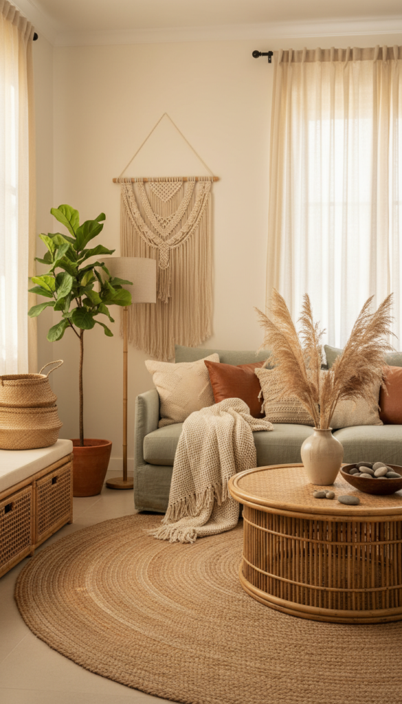 Bohemian style is all about relaxation, texture, and organic elements. It creates a warm, layered look that feels effortlessly collected rather than stiffly designed.