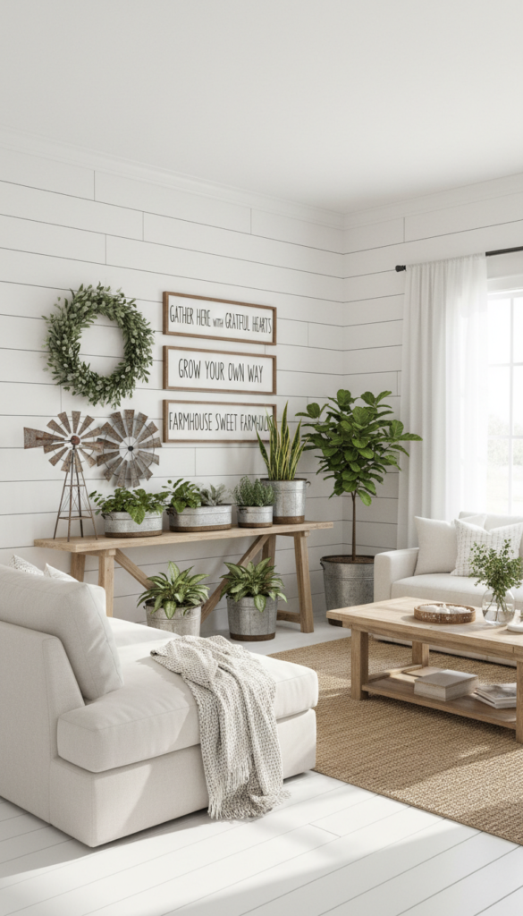 - Utilize shiplap textures or whitewashed wood.