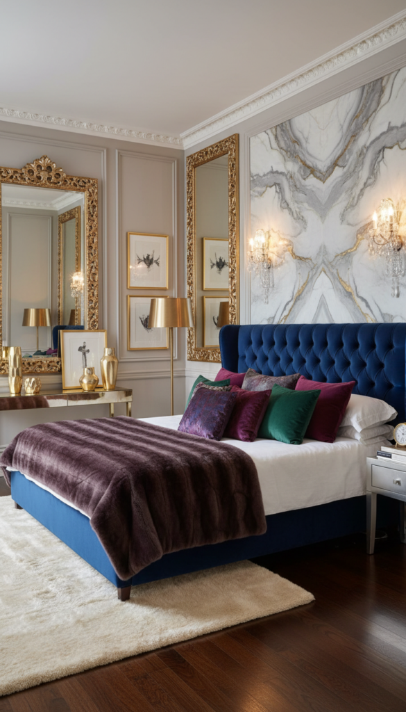 For those who want their bedroom to feel like a five-star hotel, the glam style is the way to go. It reflects light and screams sophistication.