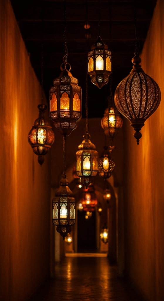 When the holiday season rolls around, lighting plays a crucial role in setting the mood. Instead of the typical string lights, why not add some eclectic, bohemian flair to your hallway with a variety of lanterns? Think vintage Moroccan-style lanterns, beaded chandeliers, and metal filigree lanterns to cast a warm, enchanting glow.