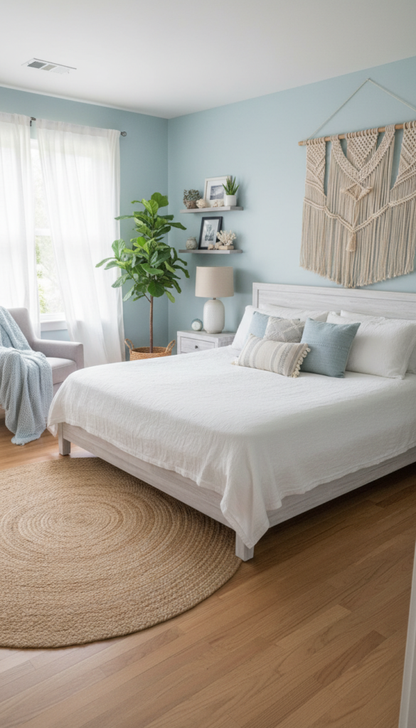 This color combo is perfect if you want a minimal boho look without heavy colors. It also works very well in small bedrooms because it reflects light naturally.