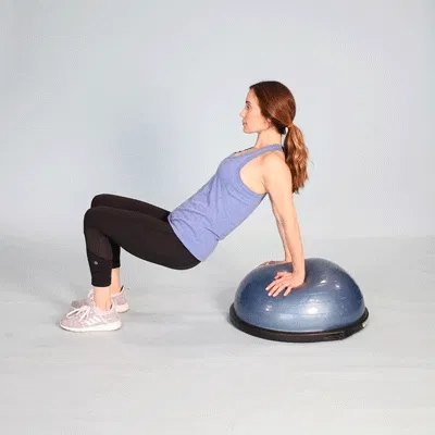 If you have wrist pain or injuries, be cautious with push-up or dip variations on the Bosu. Consider using push-up bars or modify exercises to keep wrists neutral, or focus on overhead tricep extensions and skull crushers instead.