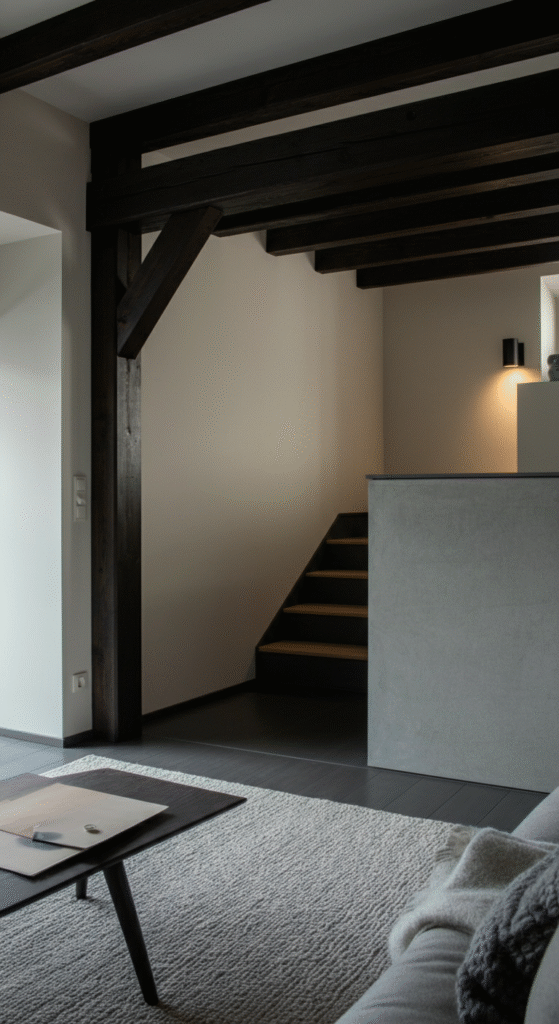 A2: Exposed wooden beams are a perfect way to bring a rustic charm to your living room. For a modern twist, pair the beams with sleek furniture and minimalist decor to create a balanced look that adds warmth without feeling too heavy.