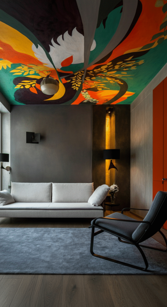 Myth Busted: Many people avoid ceiling murals, thinking they’re too bold or difficult to pull off. However, with the right colors and design, they can complement the rest of the room and provide a focal point that sparks conversation.