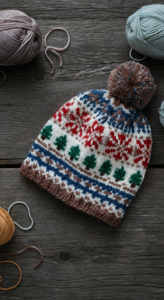 Fair Isle knitting is a December classic. The moment someone sees those seasonal motifs—snowflakes, pine trees, stars—they instantly think “Christmas.”