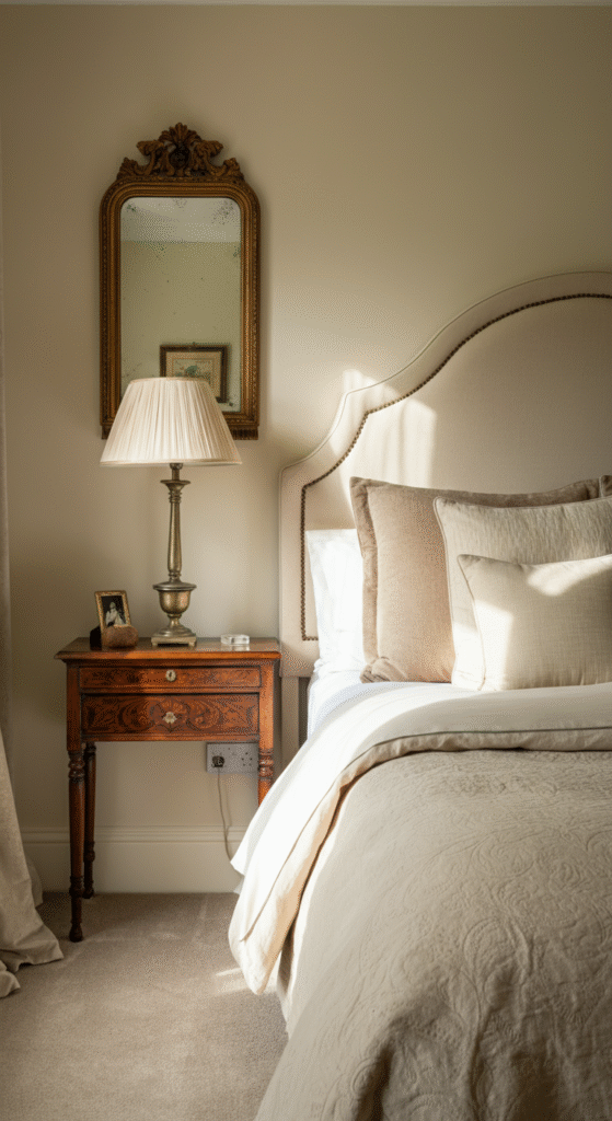 This style gives your bedroom a quietly confident look, almost like stepping into a timeless English manor.