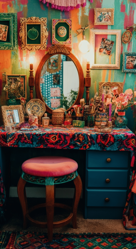 7. Colorful Boho Vanity With Eclectic Accents