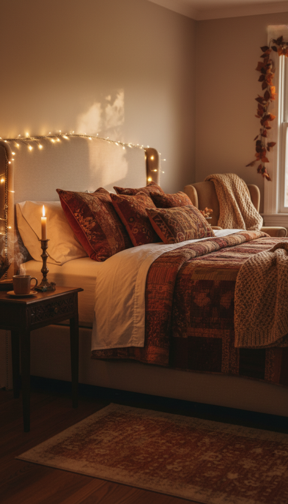 What lighting works well for a cozy fall bedroom?