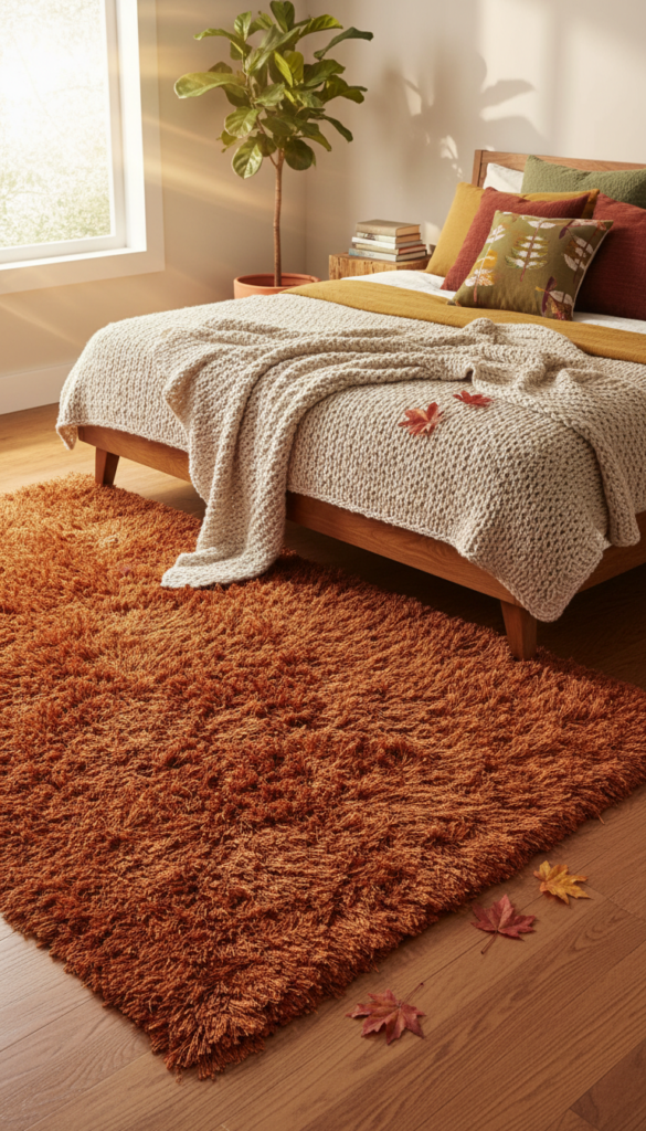 A rug not only adds warmth but also helps define the space and adds texture to your bedroom. Choose a rug with subtle patterns or earthy hues that complement the rest of your fall decor. A thick, plush rug can feel like a soft autumn embrace every time you step out of bed.
