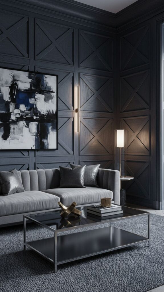 Modern board and batten is taking over interior design feeds, and for good reason. By arranging wood strips in geometric patterns—squares, diamonds, or asymmetrical lines—you create depth and shadows that paint alone can’t achieve. When painted in a deep, moody monochrome like charcoal or navy, the result is sophisticated and high-end.