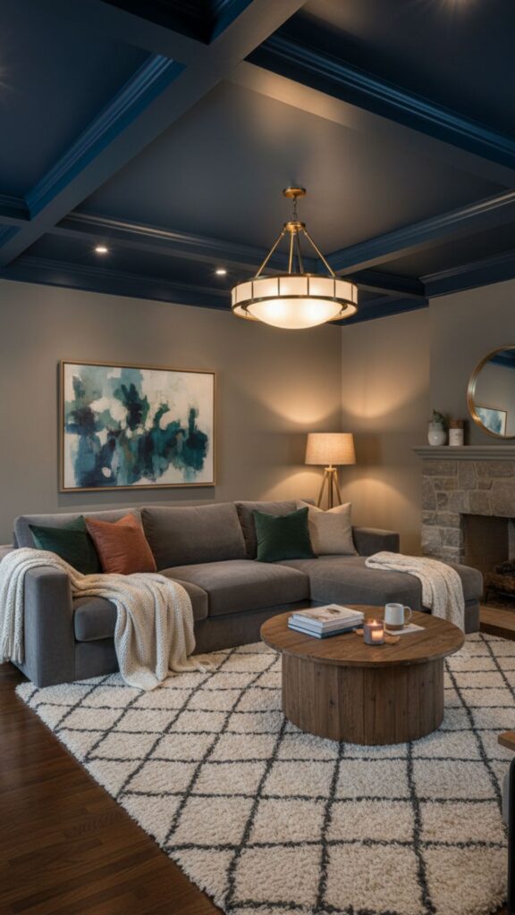 Why should walls have all the fun? Painting your ceiling a contrasting color draws the eye upward and changes the entire scale of the room. A dark ceiling can make a large room feel cozy and intimate, while a soft blue or yellow can mimic the sky and make the space feel airy.