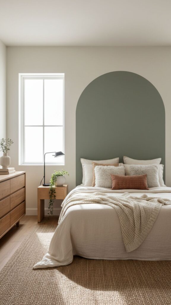 If you don’t have a headboard, paint one. A painted arch is a budget-friendly way to frame your bed and add a soft, organic shape to a room full of hard angles. It feels playful yet sophisticated, especially in terracotta or sage green tones.