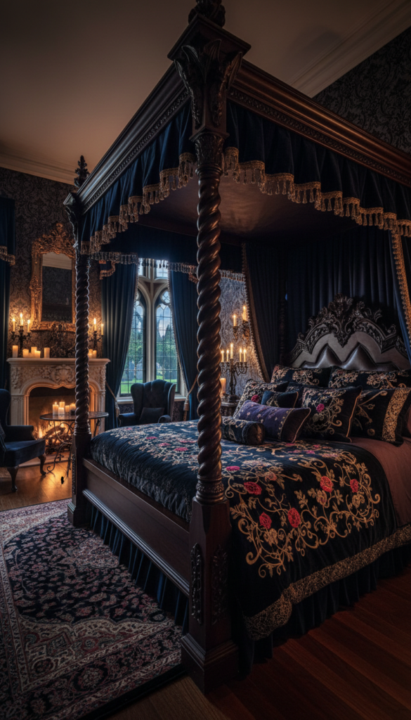 - Velvet curtains for Gothic bedroom