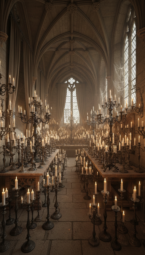 Lighting is key to creating a Gothic atmosphere, and nothing says “mysterious and macabre” like antique-style candlesticks or candelabras. Opt for black, silver, or gold candle holders with a vintage finish, and place them on your nightstand or mantle. Light them with flickering candles to cast eerie shadows across your walls, enhancing the spooky vibe.