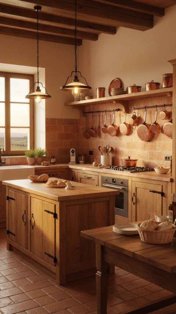 This design celebrates the warmth of the Italian countryside. It prioritizes natural materials, earthy tones, and a “lived-in” feel that is instantly welcoming. The elevation here relies heavily on exposed wood and stone.