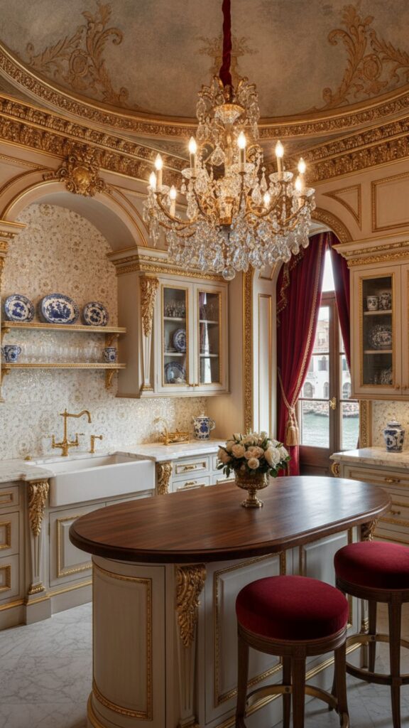 Venetian design is all about opulence, intricate details, and a touch of romance. This elevation style often features glass-front cabinets, elaborate moldings, and rich gold or brass accents.
