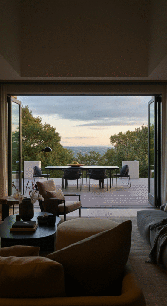 Sliding doors between the living room and a balcony or patio create an indoor-outdoor flow that’s perfect for warm weather. It brings the beauty of nature inside, all while maintaining a sense of privacy and separation when needed.