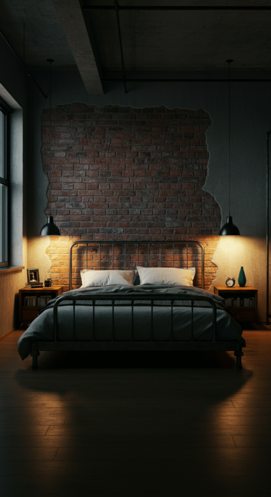 With this layout, the brick wall becomes your anchor. It frames the bed, sets the tone, and adds a sense of character that can’t be duplicated with paint alone.