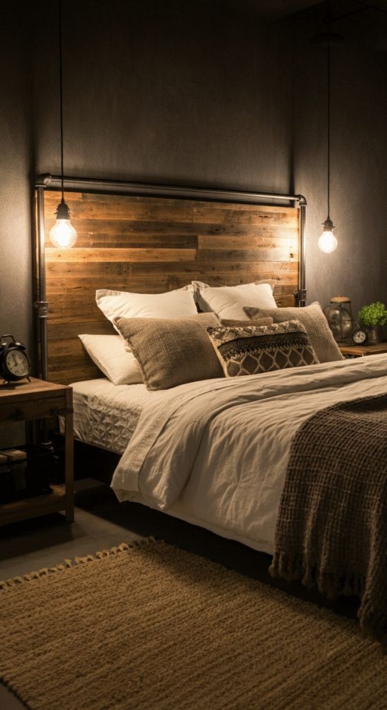 6. Rustic Industrial Bedroom with Reclaimed Wood and Metal Headboards