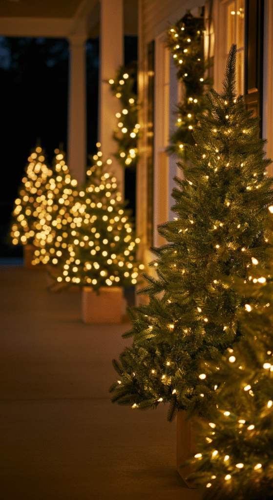 Outdoor Christmas trees are classic, but luxury styling changes how they’re used. Instead of one large tree in the center, consider multiple medium-sized pre-lit trees placed strategically around the yard. This layering tricks the eye into seeing more depth and dimension.