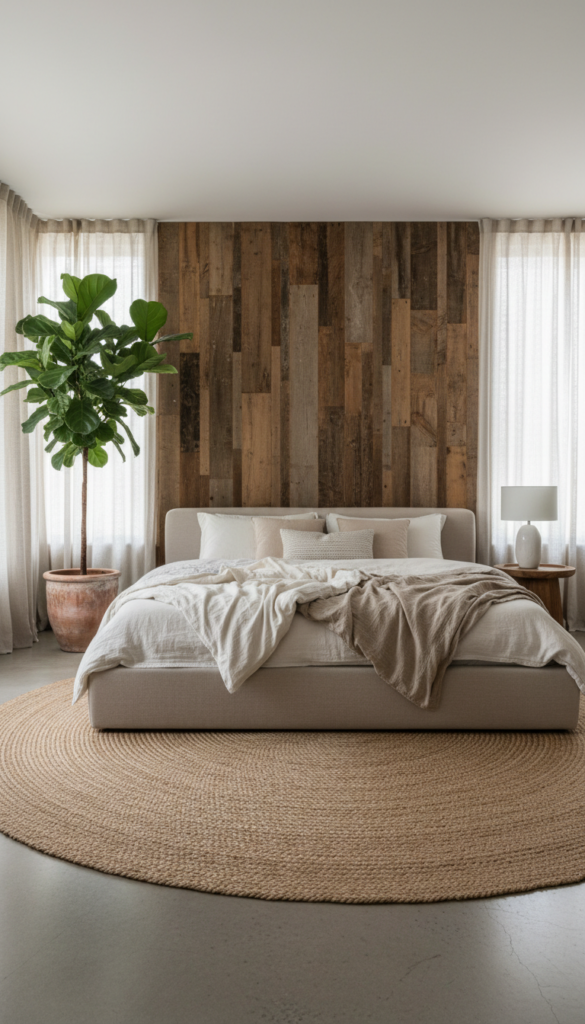 - Natural Materials: Incorporate a large reclaimed wood headboard or a stone accent wall.