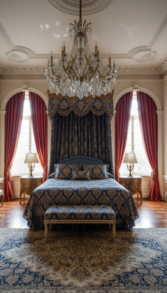 For those who love grandeur, this aesthetic uses the vertical height of a large room. It features molding, chandeliers, and heavy drapery that emphasizes the scale of the space.